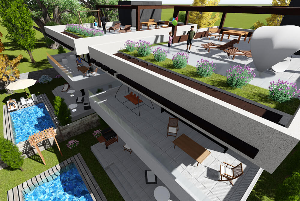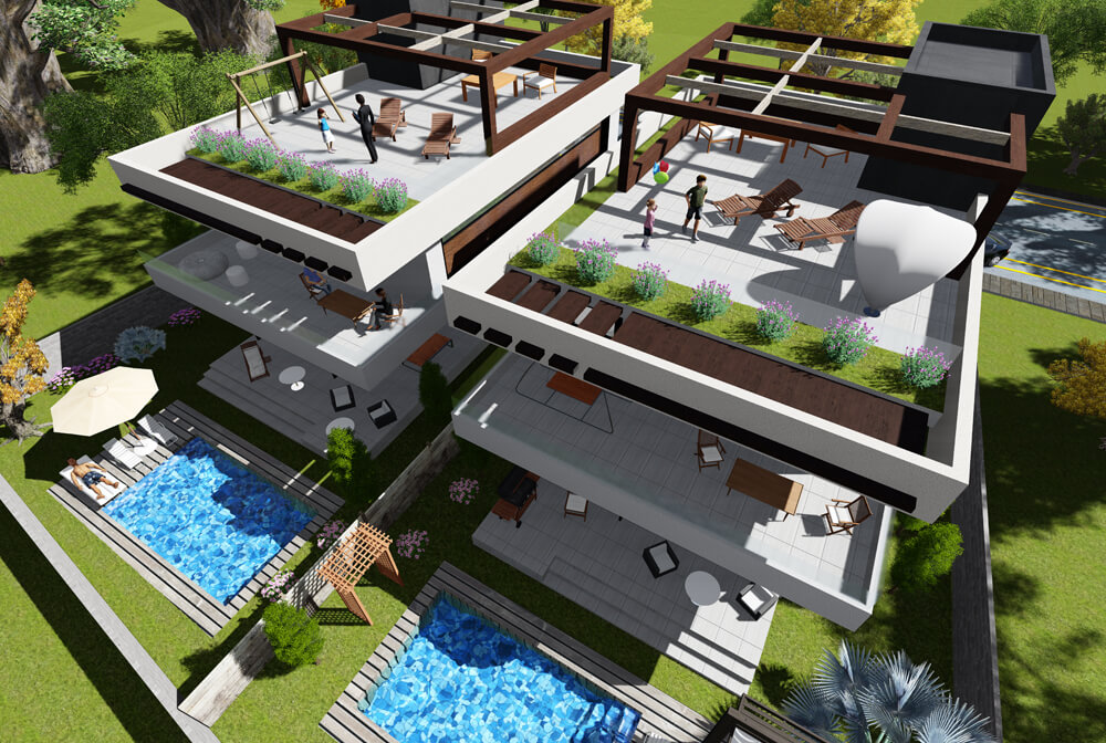 Modern New Complex with Houses, optional pools.