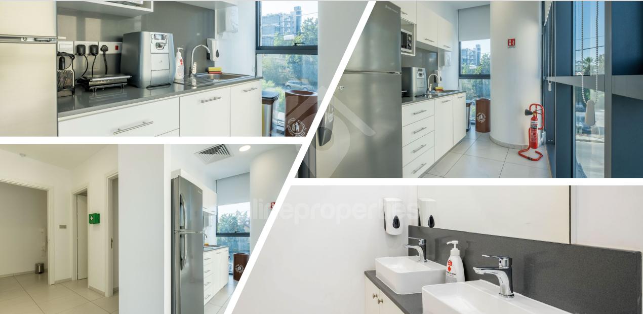The office building is located at a very convenient location at the entrance of Nicosia. Floors 1&2 are available for rent. Internal area of 275 sq.m., can accommodate 33employs, a large open working space and three closed offices. It s furnished with desks, there is a conference room for 8 people with TV, equipped kitchenettes with fridge, microwave, Straus water dispenser, four toilets, photocopy machine upon request at an extra cost. There is a security desk/reception in the building, building and Floor access System, intruder alarm and fire extinguishing systems, cooling and heating , raised floors, structured cabling, conference rooms on the ground floor for meetings (available upon reservation), cafeteria on the 7th floor, covered and uncovered parking spaces, dedicated server room with access, cleanings facilities (upon request and at extra cost), designated underground parking spaces(7), more available on a designated area nearby.