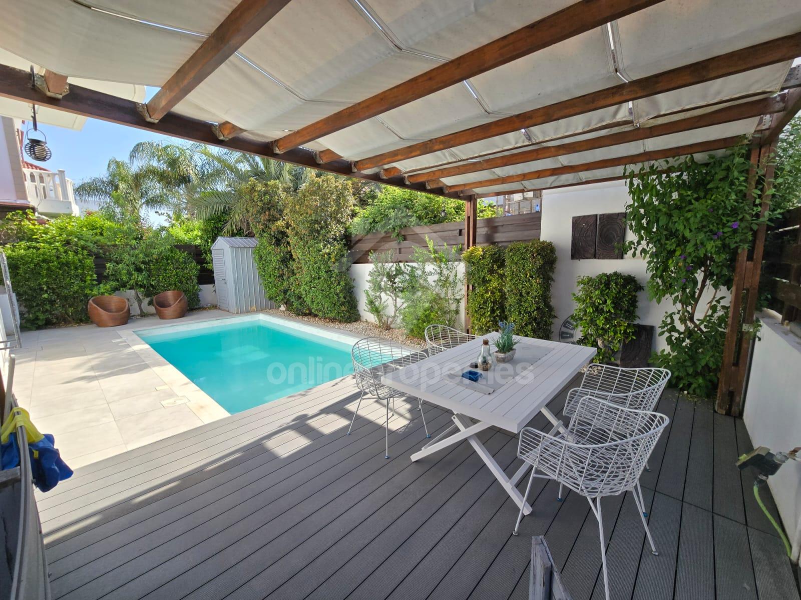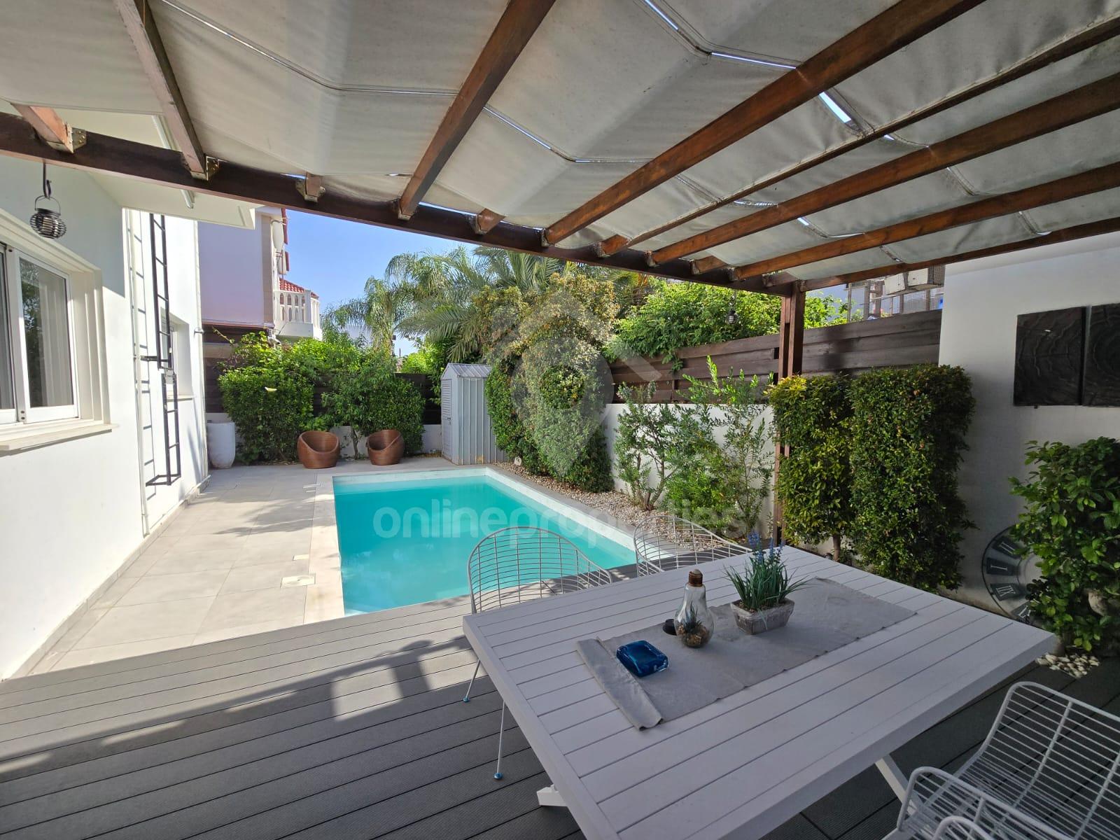Welcome to this stunning Detached House located in the serene neighborhood of Lakatamia. Situated in a cul-de-sac, this property offers tranquility and easy access to all main roads.Nestled on a spacious315 sqm plot, this house boasts a beautiful garden with a private swimming pool and a cozy sitting-barbeque area, perfect for relaxing or entertaining guests.Step inside to discover4 bedrooms, including one en-suite shower,2 living rooms,2 bathrooms (one with a bathtub, one with a shower),3 toilets, and a fully-equipped kitchen.The house comes with fantastic features such as A/C units in all rooms, central heating, covered parking, and a solar water heater. Not to mention, pets are welcome in this lovely abode!Don't miss out on this opportunity - be ready to move in by1st of July. Contact us today to make this dream home yours.